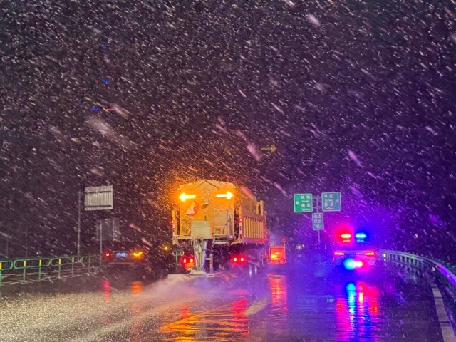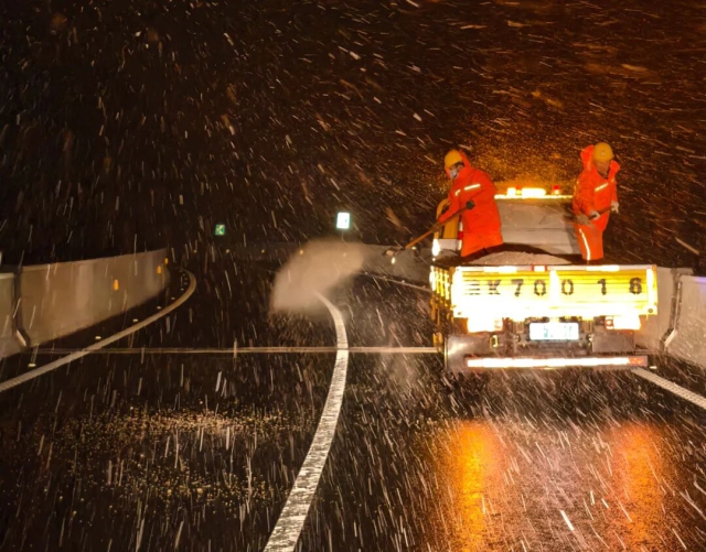 養(yǎng)護公司緊急調集“國儲中心”除雪車輛馳援降雪路段營運單位,并組成由除雪滾刷車、融雪劑撒布車的作業(yè)編隊迅速到位,對關鍵路段展開多輪次、不間斷除雪作業(yè)。