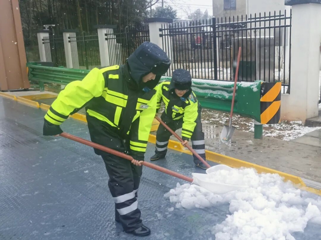宣城中心楊柳站工作人員清理車道積雪