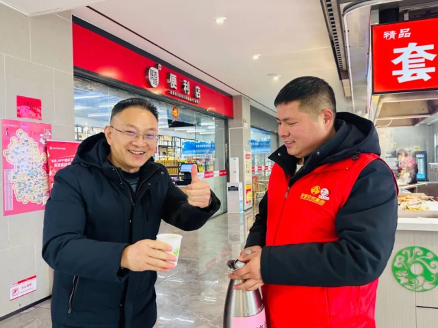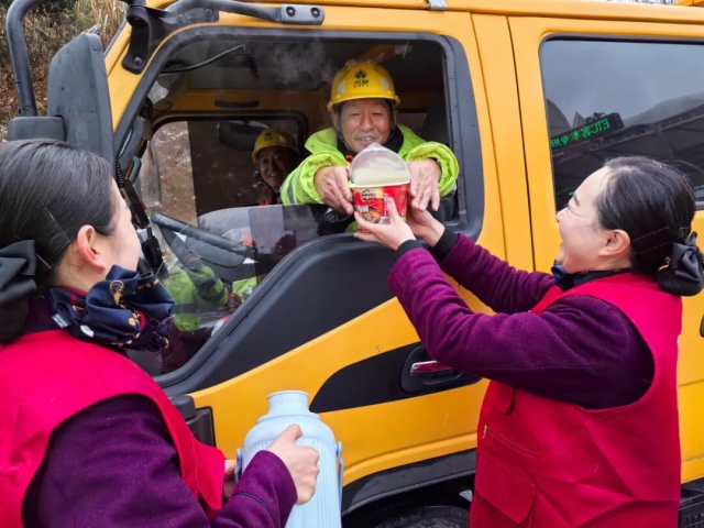 驛達集團石沛服務區(qū)志愿者為司乘人員送上暖心姜茶