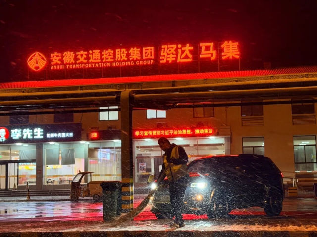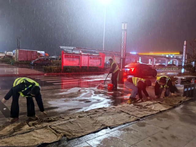 驛達集團馬集服務區(qū)工作人員清理廣場積雪