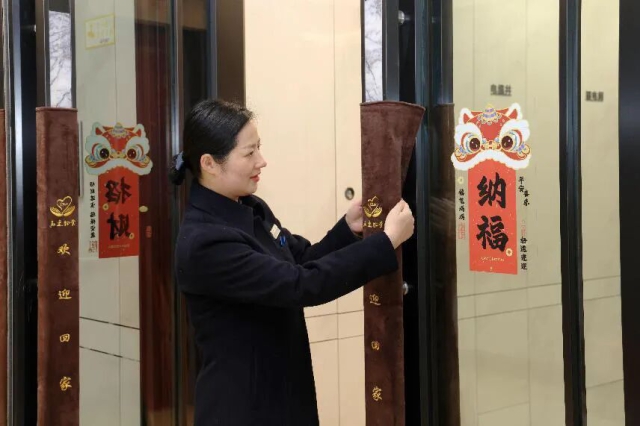 地產(chǎn)集團合肥高速·尚闔院物業(yè)管家為單元門把手穿上絨布套