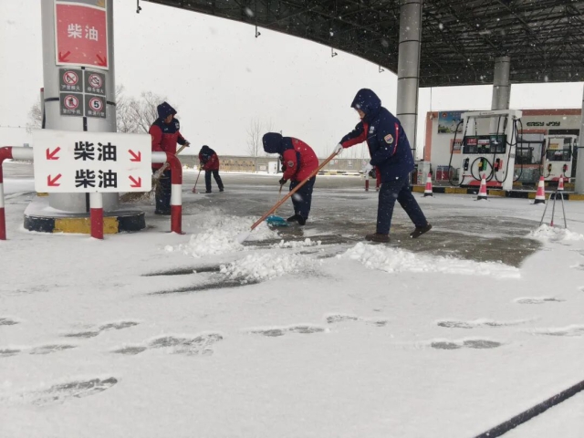 驛達(dá)服務(wù)區(qū)在易滑區(qū)域鋪設(shè)防滑墊并設(shè)置警示牌,在廣場(chǎng)、通道等易結(jié)冰路面,及時(shí)撒布融雪劑,并備足各類除雪防滑物資。依托“司機(jī)之家”“U+幸福驛站”等載體,組織志愿者為司乘提供姜茶熱飲、便民藥箱等貼心服務(wù)。加油站板塊統(tǒng)籌優(yōu)化資源調(diào)配,積極協(xié)調(diào)成品油資源,根據(jù)天氣預(yù)警情況,提前向受惡劣天氣影響的重點(diǎn)路段加油站增配庫(kù)存。各加油加氣站提前備足防滑墊、鐵鍬、掃帚等應(yīng)急物資,及時(shí)清理加油區(qū)及進(jìn)出口通道積雪。